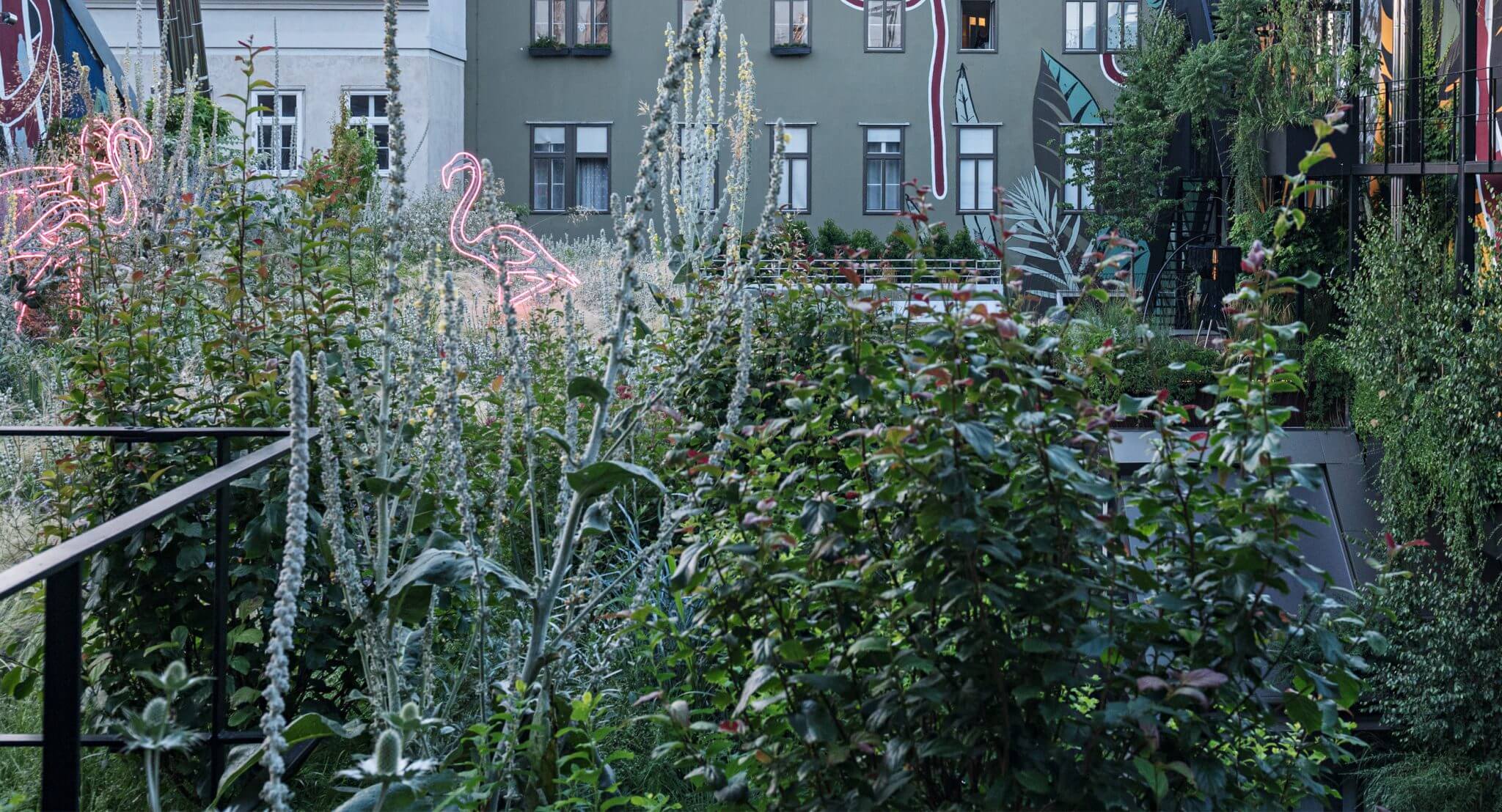 In the centre of Austria’s capital, BEHF Architects has implemented an extraordinary biotope of nature and art. At the same time, the architects have improved the microclimate and the quality of living in apartments that face the courtyards. An extensive green roof of the ARTSPACE and the use of vertical greening for firewalls reduce the temperature by up to 4 degrees.