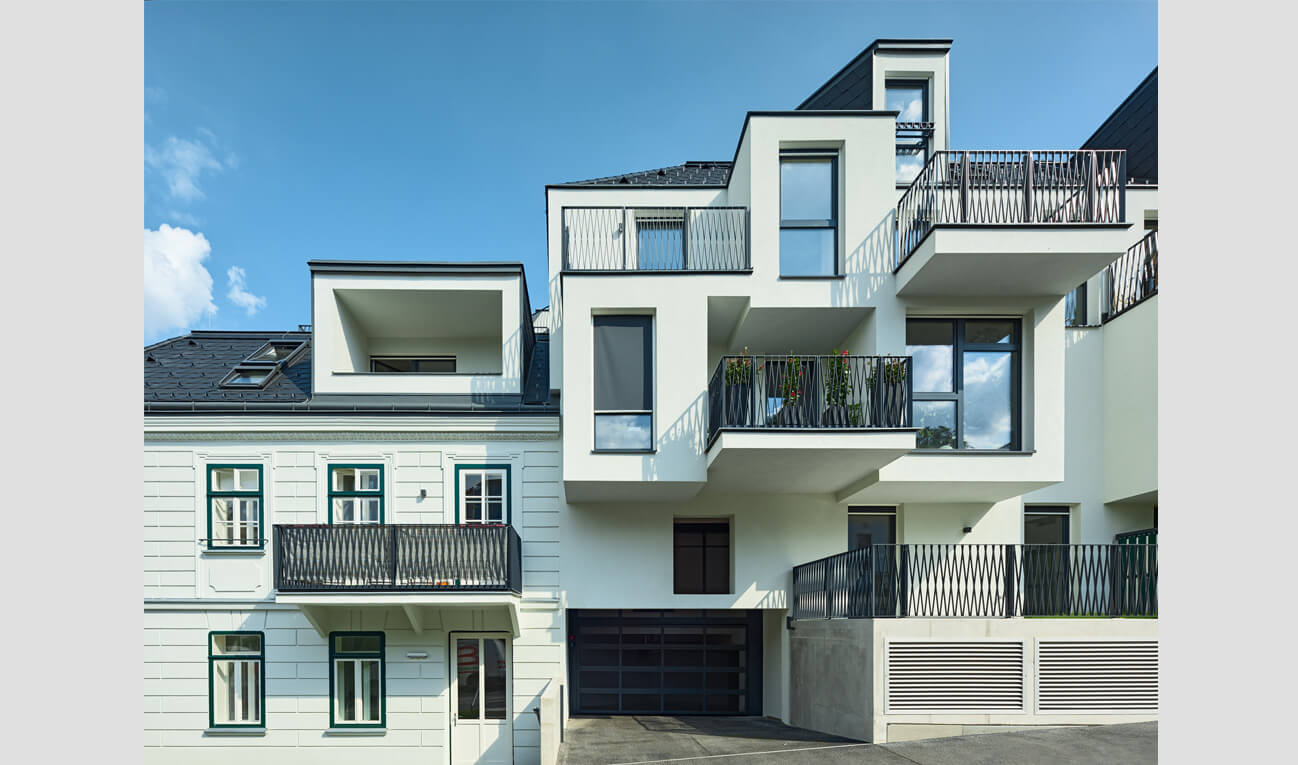 The appeal of the former hotel and tavern in Lilienberggasse lies in its distinctive Biedermeier facade typical for the borough. BEHF Architects has carefully restored the facade, keeping visible the traces from considerable interventions from the 1960s.